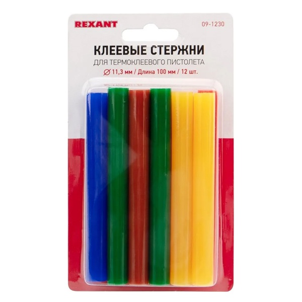 Стержни клеевые REXANT O 11 мм, 100 мм, цветные (12 шт./уп.) (блистер)