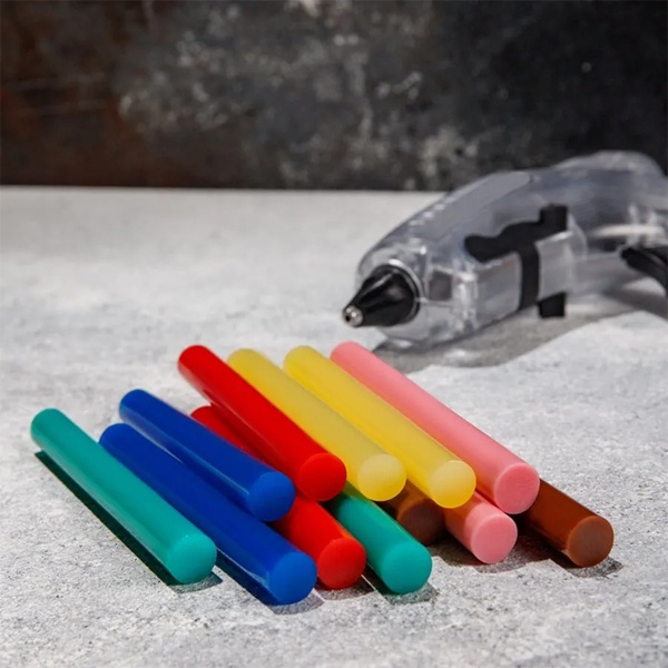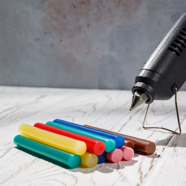 - Удобство использования — достаточно зарядить стержни в клеевой пистолет и поверхности будут склеены всего одним нажатием на курок;
