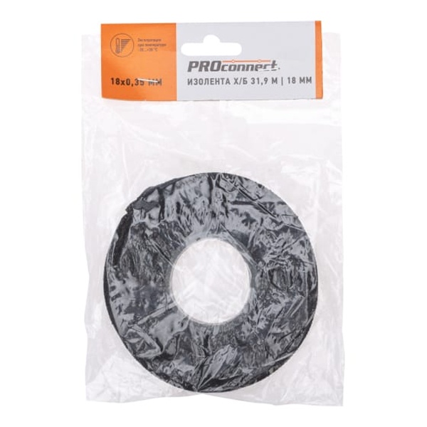 Изолента хлопчатобумажная Proconnect сохраняет свои свойства в широком диапазоне температур: от -30° С до +30° С, поэтому ее можно использовать именно в российской местности. Эта изолента используется в неагрессивных средах. Является хорошей защитой от влаги, щелочей, кислот и служит прекрасной механической защитой.