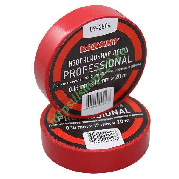 Изолента профессиональная 0.18 х 19 мм х 20м красная REXANT 09-2804