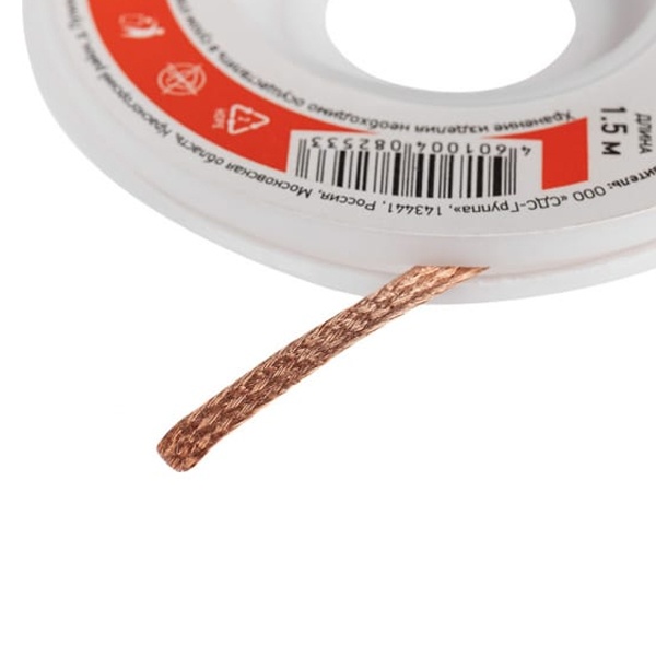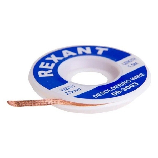 Оплетка для удаления припоя REXANT предназначена для деликатного демонтажа радиокомпонентов с печатных плат при ремонтных работах. Представляет собой оплётку из высококачественной тонкой медной проволоки, покрытой безотмывочным флюсом «RMA».
