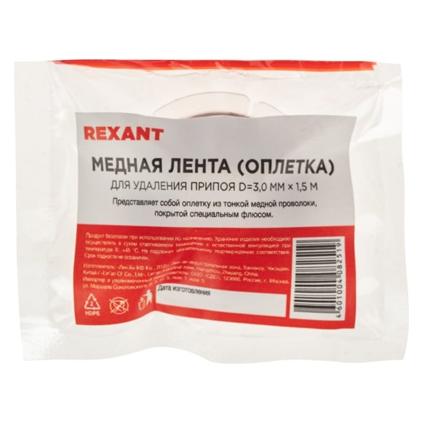 Оплетка для удаления припоя Рексант, шириной 3 мм, длиной 1,5 м 09-3004