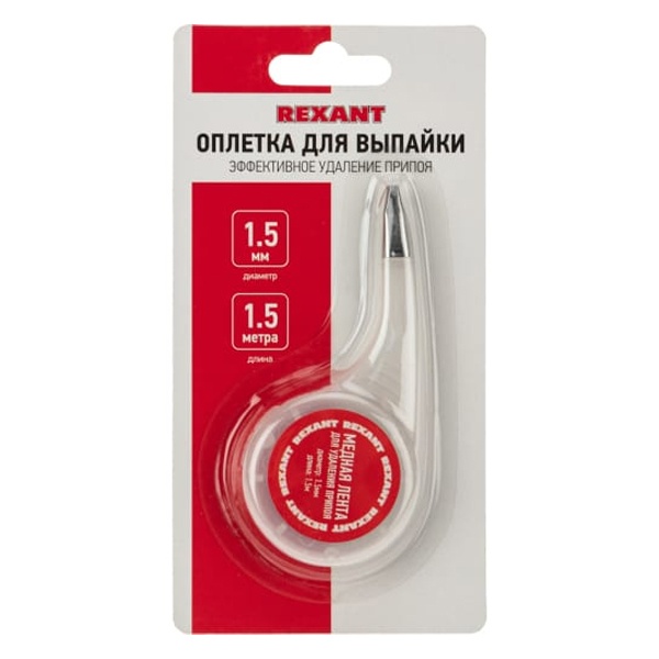 Оплетка для удаления припоя REXANT, медная, 1.5 мм x 1.5 м, диспенсер