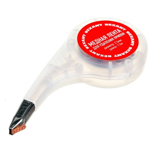 Оплетка для удаления припоя Рексант, шириной 2,5 мм, длиной 1,5 м, в диспенсере 09-3033