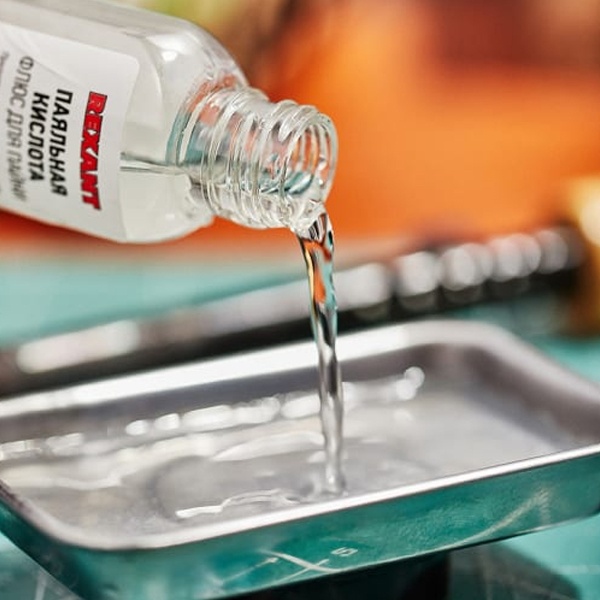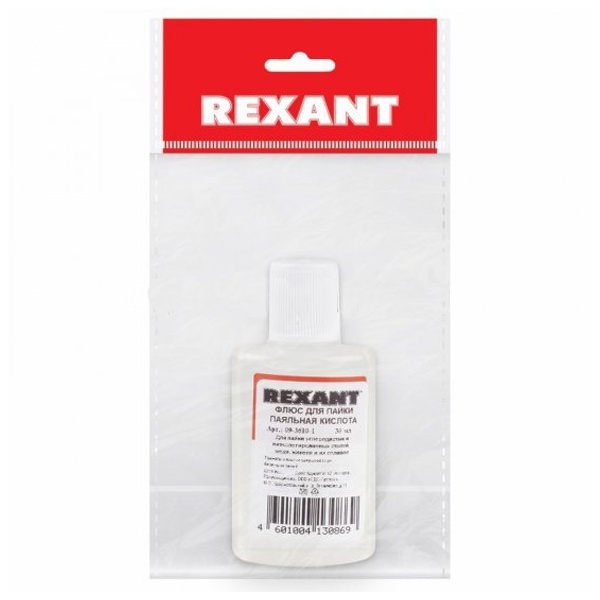 Флюс для пайки паяльная кислота 30 мл REXANT предназначен для удаления оксидов с поверхности под пайку, улучшения растекания жидкого припоя при пайке углеродистых и низколегированных сталей, меди, никеля и их сплавов. Это одно из самых распространенных средств для пайки.Данный низкотемпературный флюс применяется при пайке деталей или поверхностей припоями оловянно-свинцовой группы в температурном диапазоне 290...350 °C. После пайки требуется отмывка остатков кислоты 5 % раствором кальцинированной соды.