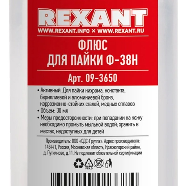 Флюс для пайки REXANT, Ф-38Н, 30 мл, флакон