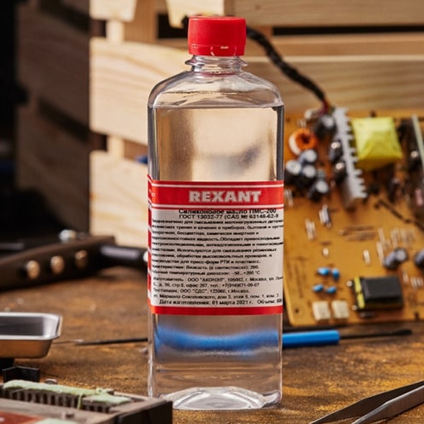 ПолиМетилСилоксановая жидкость ПМС-200 (ГОСТ 13032-77) REXANT — бесцветная прозрачная химически инертная и коррозионностойкая силиконовая жидкость без запаха.В отличие от минеральных или синтетических масел, данная жидкость обладает превосходными электроизоляционными, антиадгезионными и пеногасящими свойствами.