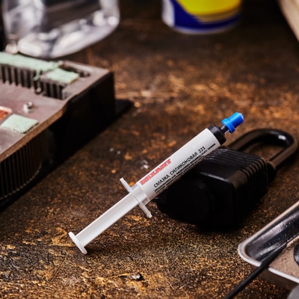 Смазка силиконовая 221 (до +350 °C) 2 мл (шприц) REXANT предназначена для смазывания механизмов и трущихся деталей, конструкционных резьбовых соединений.Такая химически инертная смазка применяется в различных отраслях промышленности, электротехнике, на морском и автомобильном транспорте или в сельском и домашнем хозяйствах.В состав входят высокоочищенные синтетические базовые масла и неплавящийся загуститель, что обеспечит защиту в широком температурном диапазоне, до +350 °C. Она защитит резиновые или пластиковые детали от деформации, растрескивания, также и от другого негативного внешнего воздействия.