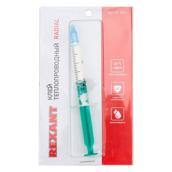 Клей теплопроводный RADIAL KELLER 2 мл REXANT применяется для монтажа светодиодов, теплоотводящей арматуры к процессору, транзистору, в случаях невозможности использования теплопроводной пасты.