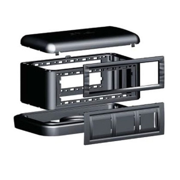 Добрый день, Андрей.Вам нужно приобрести "Каркас под 2 модуля "Brava", чёрный, для кабель-канала DKC In-liner Front"(артикул:F0000MB) - 3 шт.