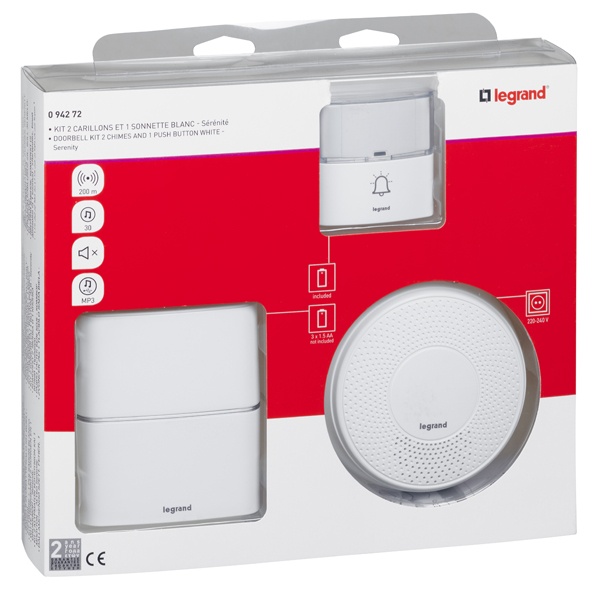 094272 Звонок беспроводной двойной Legrand звонки Премиум DC 4,5В + Комфорт AC 220В, белый фото 2