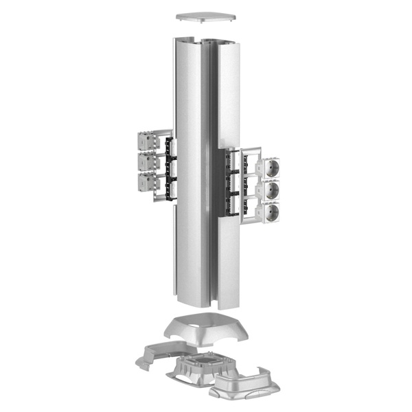 Надёжная и прочная конструкция позволяет использовать колонну в помещениях со сложными условиями эксплуатации – алюминиевый корпус защитит от повреждения кабели, проложенные внутри. Элегантная по дизайну колонна с закруглёнными линиями органично вписывается в любой интерьер. Применяются для открытой прокладки сменяемых сетей.