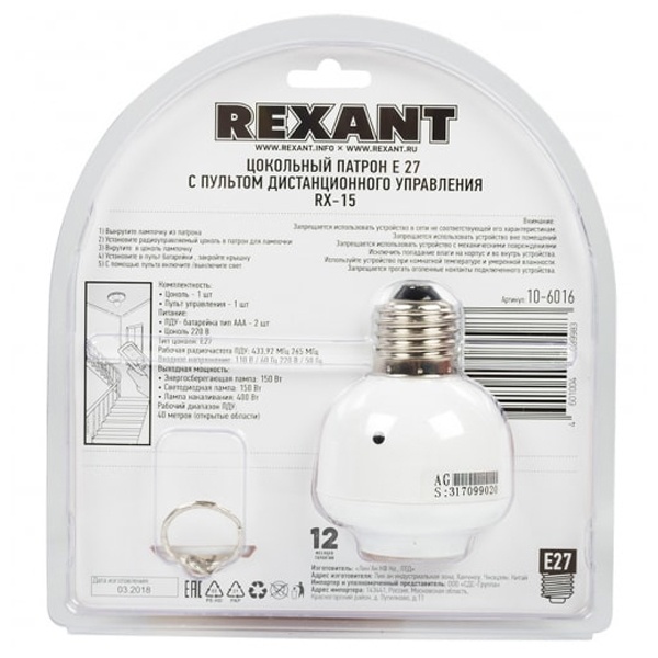 Цоколь для лампочки E27 с пультом управления надежное и простое устройство благодаря которомувы сможете управлять освещением дистанционно с помощью пульта дистанционного управления. Данное устройство идеально подходит в местах где не требуется или не возможно вывести отдельный выключатель для лампочки, беседки, гаражи, технические помещения, пролеты лестниц.