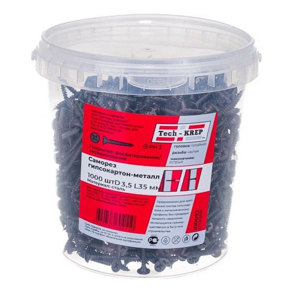 Фосфатированный саморез для крепления гипсокартонных листов СГМ 3.5x35 мм 100092