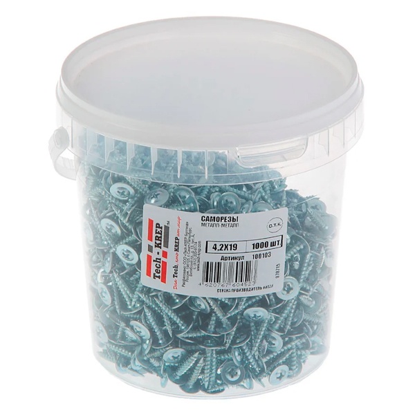 100103 Саморез по металлу Tech-KREP СММ 4.2х19 острый с прессшайбой [ведро 1000шт]