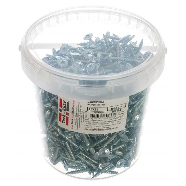 100104 Саморез по металлу Tech-KREP СММ 4.2х25 острый с прессшайбой [ведро 1000шт]