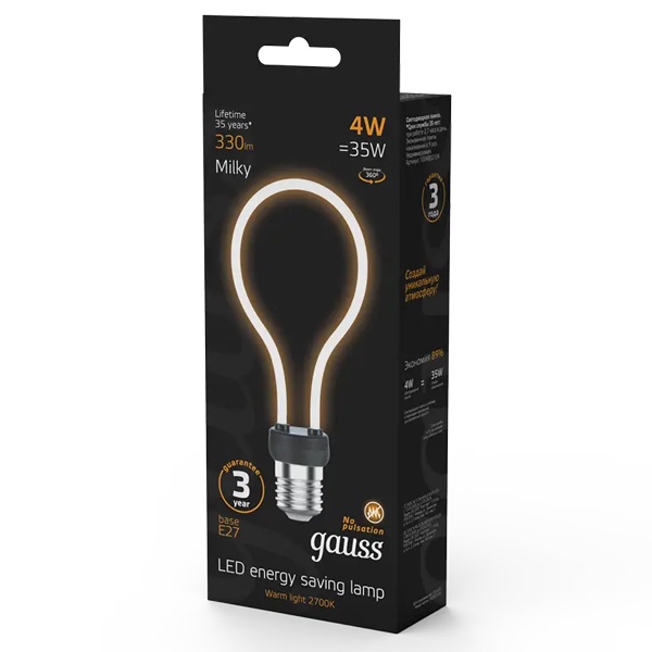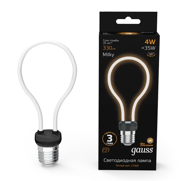 Филаментная, декоративная лампочка Гаусс, мощностью 4 Ватта с цоколем E27, теплый свет, матовая 1004802104