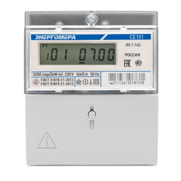 Однофазный модульный счетчик электроэнергии однотарифный прямого подключения с жидкокристаллическим дисплеем, 5(60)А, Энергомера CE101-R5.1 101001003011124