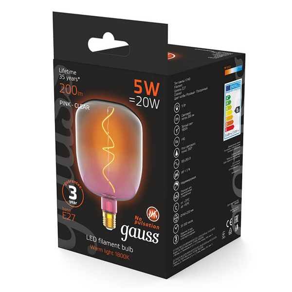 • Лампа филаментная светодиодная Gauss V140 5W 1800K E27 200Lm pink-clear flexible