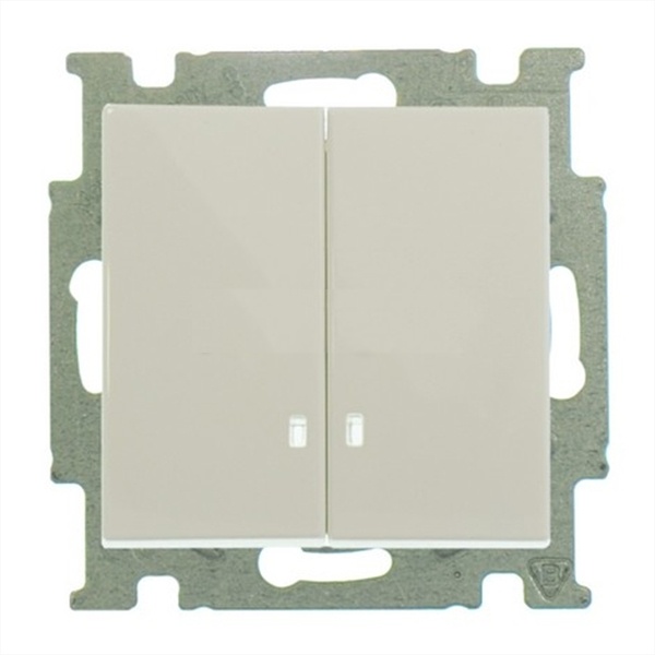 Двухклавишный выключатель с подсветкой (лампа 1 мА) скрытой установки ABB серии Basic 55 цвета слоновой кости с напряжением в 250 Вольт и номинальным током 10 Ампер 2CKA001012A2157