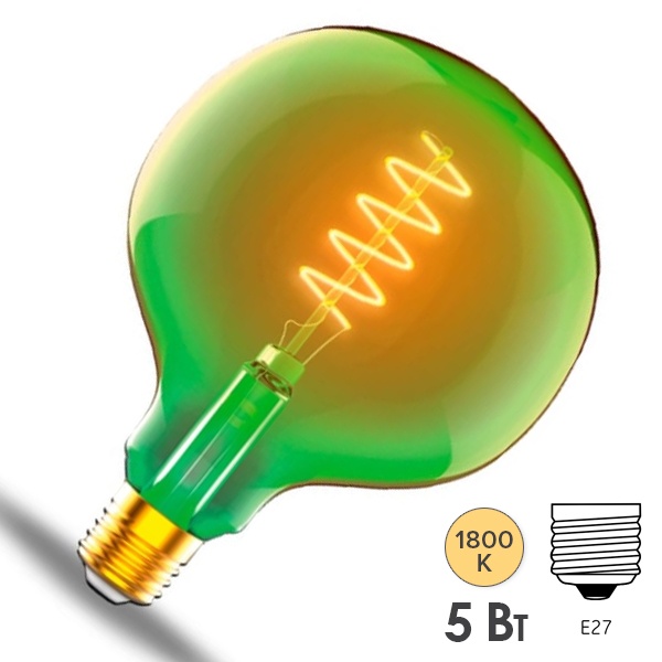 1012802105 Лампа Gauss Filament G125 5W 190lm 1800К Е27 green flexible LED