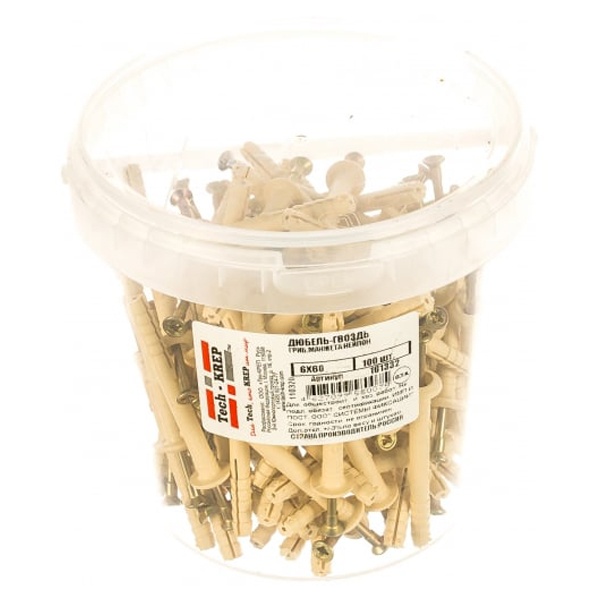 Усиленный подголовник у основания шляпки выдерживает значительные нагрузки при забивании, подголовник плотно фиксируется в отверстии дюбеля, предохраняя его от излома.