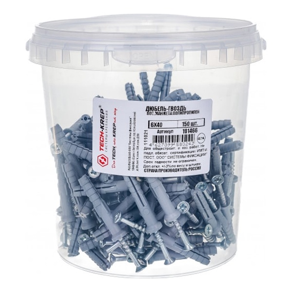 Полипропиленовый дюбель-гвоздь с потайным бортиком SM-L 6x40 мм 101466
