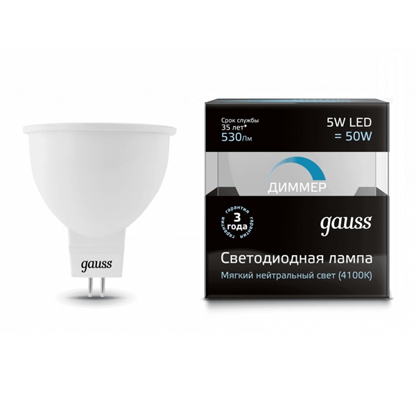 Диммируемая энергосберегающая LED лампочка мощностью 5 Ватт с цоколем GU5,3 белый свет 101505205-D