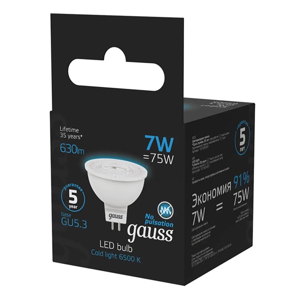 • Лампа светодиодная Gauss LED MR16 7W 6500K 220V GU5.3 630Lm дневной свет