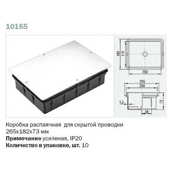 Распределительная коробка 265х182х73 мм для скрытого монтажа в бетон 10165