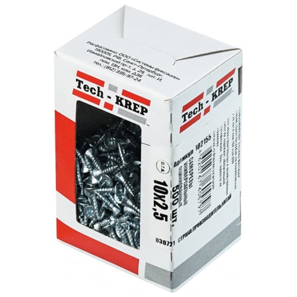 102155 Саморез универсальный Tech-KREP 2,5х10 оцинкованный потайная головка [коробка 500шт]