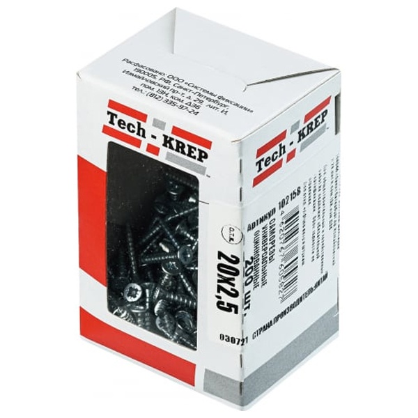 • Саморез универсальный Tech-KREP 2,5х20 оцинкованный потайная головка [коробка 200шт]