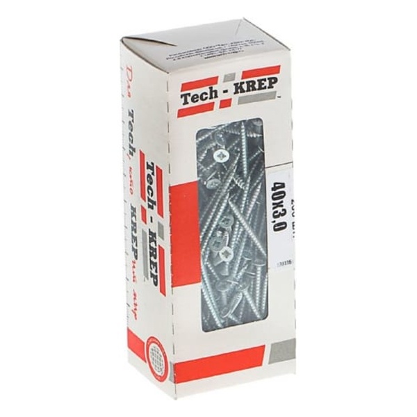 • Саморез универсальный Tech-KREP 3,0х40 оцинкованный потайная головка [коробка 200шт]