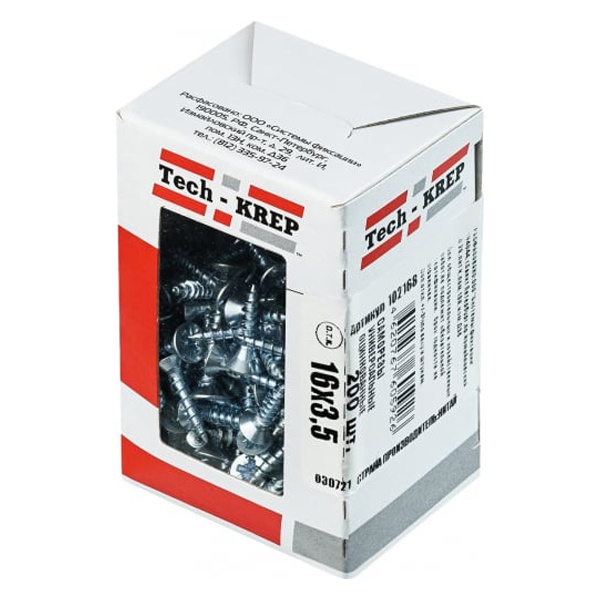 102168 Саморез универсальный Tech-KREP 3,5х16 оцинкованный потайная головка [коробка 200шт]