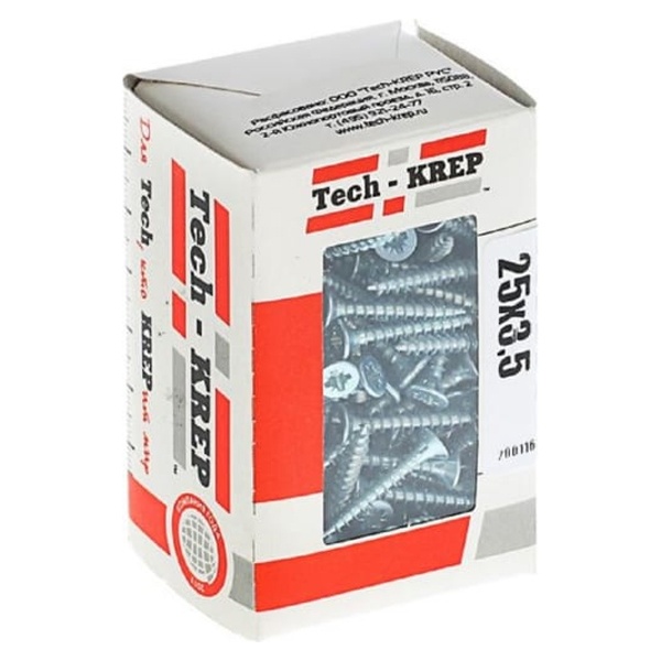 • Саморез универсальный Tech-KREP 3,5х25 оцинкованный потайная головка [коробка 200шт]