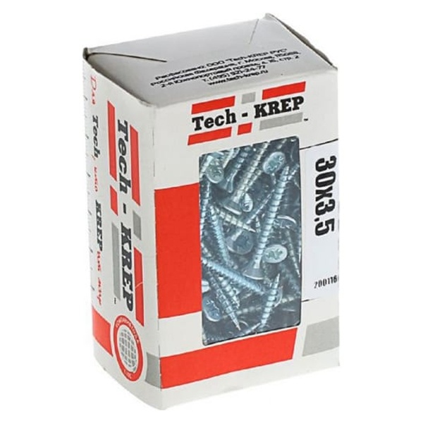 • Саморез универсальный Tech-KREP 3,5х30 оцинкованный потайная головка [коробка 200шт]