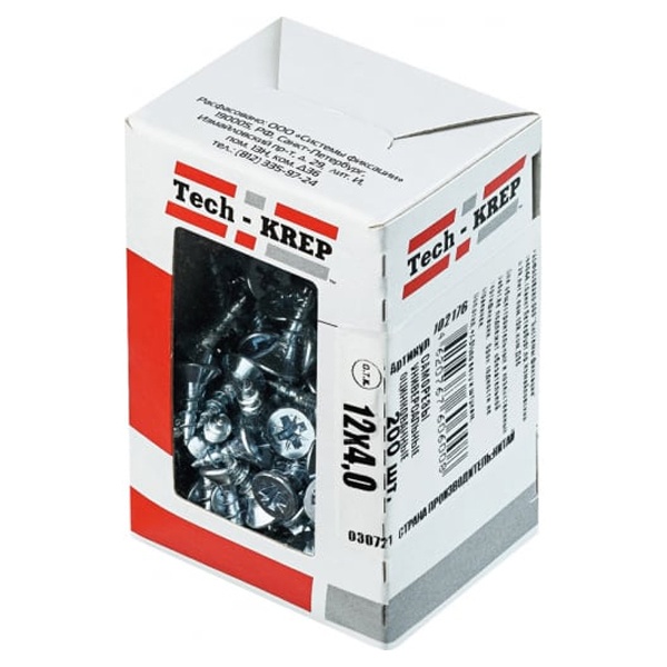 102176 Саморез универсальный Tech-KREP 4,0х12 оцинкованный потайная головка [коробка 200шт]