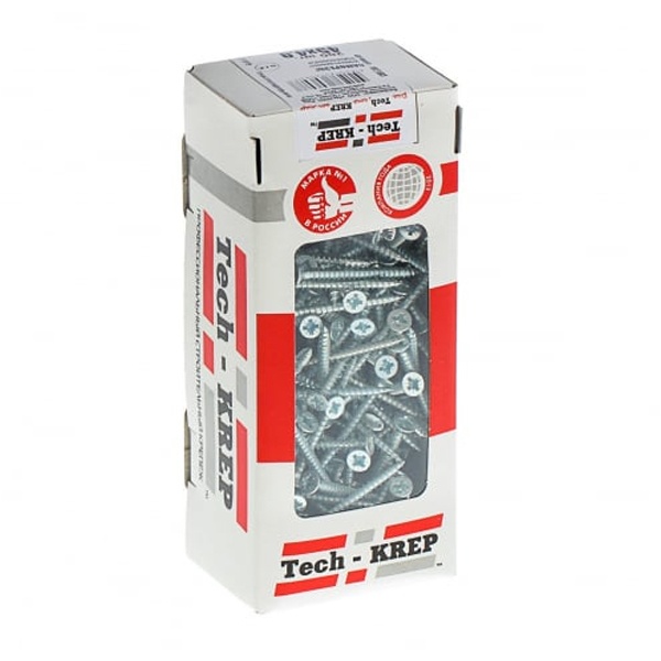 • Саморез универсальный Tech-KREP 4,0х45 оцинкованный потайная головка [коробка 200шт]