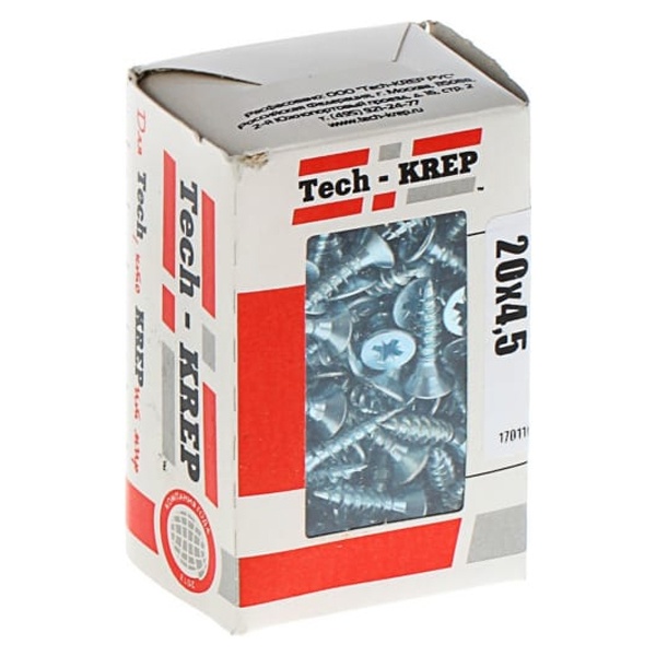 • Саморез универсальный Tech-KREP 4,5х20 оцинкованный потайная головка [коробка 200шт]