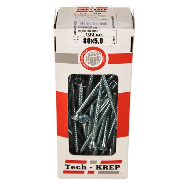 • Саморез универсальный Tech-KREP 5,0х80 оцинкованный потайная головка [коробка 100шт]