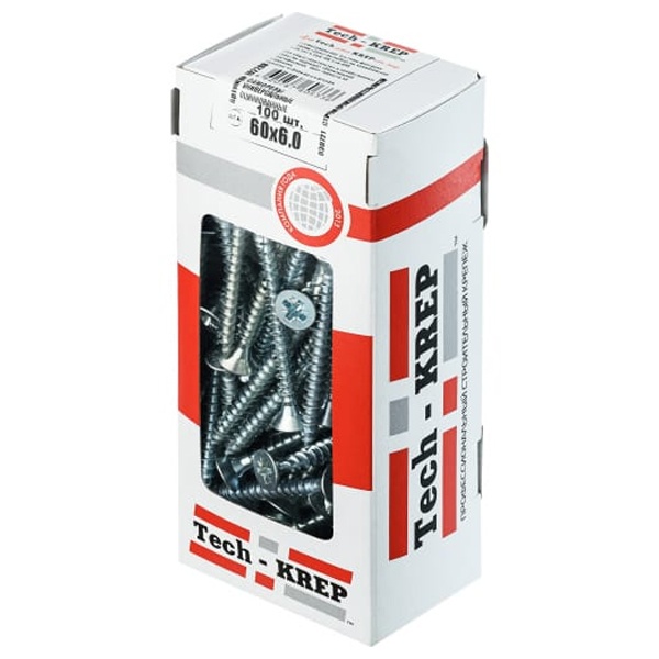 • Саморез универсальный Tech-KREP 6,0х60 оцинкованный потайная головка [коробка 100шт]