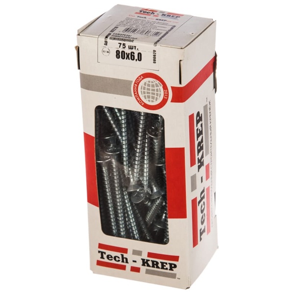 102210 Саморез универсальный Tech-KREP 6,0х80 оцинкованный потайная головка [коробка 75шт]