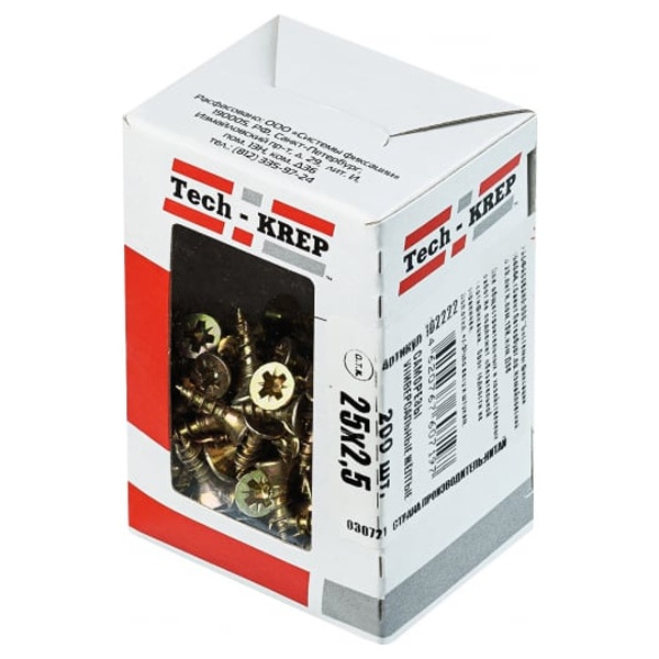Универсальные закаленные саморезы по дереву, 2,5x25 мм 102222