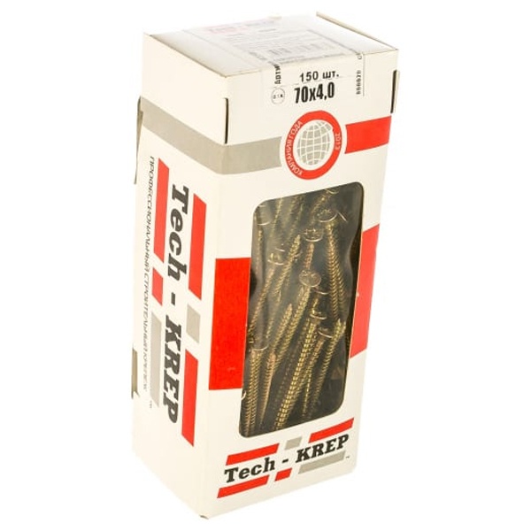 • Саморез универсальный Tech-KREP 4,0х70 желтый цинк потайная головка [коробка 150шт]