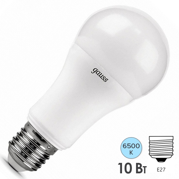Светодиодная лампочка Гаусс мощностью 10 Ватт, с цоколем E27, холодный дневной свет, со ступенчатой регулировкой яркости, матовая колба 102502310-S