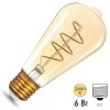 Филаментная ретро-лампочка ST65 Гаусс, мощностью 6 Ватт, с цоколем E27, теплый свет, прозрачная колба 102802006