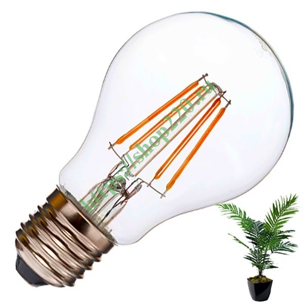 Филаментная лампа дает эффективный широкий световой поток 360°. Активирует процесс фотосинтеза и имеет сине-красный спектр свечения.