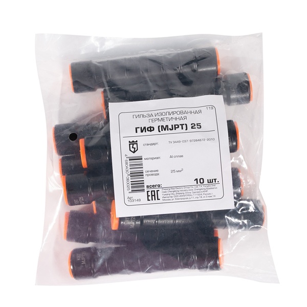 Гильза КВТ изолированная герметичная ГИФ (MJPT) предназначена для надежного соединения фазных магистральных проводов СИП. Обеспечивает прочное электрическое соединение с защитой от влаги и внешних воздействий благодаря герметичной изоляции. Идеально подходит для использования в наружных и внутренних электрических сетях, обеспечивая долговечность и безопасность соединений.