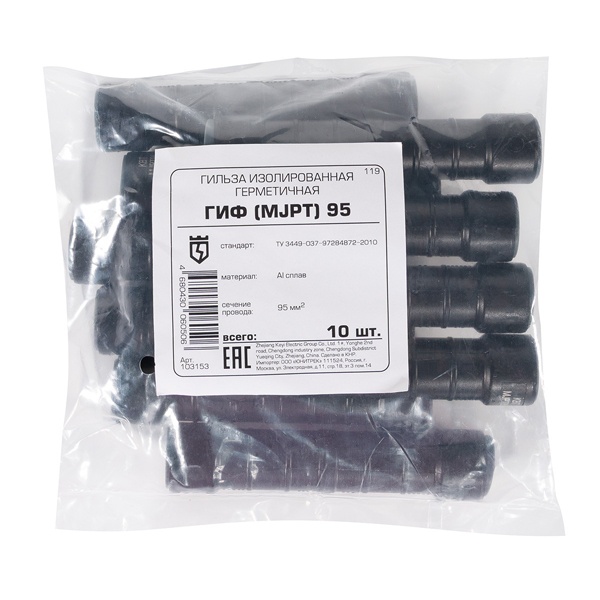 Гильза КВТ изолированная герметичная ГИФ (MJPT) предназначена для надежного соединения фазных магистральных проводов СИП. Обеспечивает прочное электрическое соединение с защитой от влаги и внешних воздействий благодаря герметичной изоляции. Идеально подходит для использования в наружных и внутренних электрических сетях, обеспечивая долговечность и безопасность соединений.
