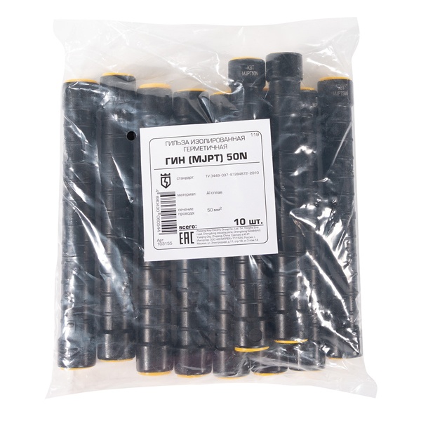 Гильза КВТ изолированная герметичная ГИН (MJPT) предназначена для надежного соединения несущей нейтрали линий СИП. Обеспечивает герметичную защиту от влаги и внешних воздействий, что гарантирует долговечность и стабильность электрических соединений в наружных воздушных линиях электропередачи.